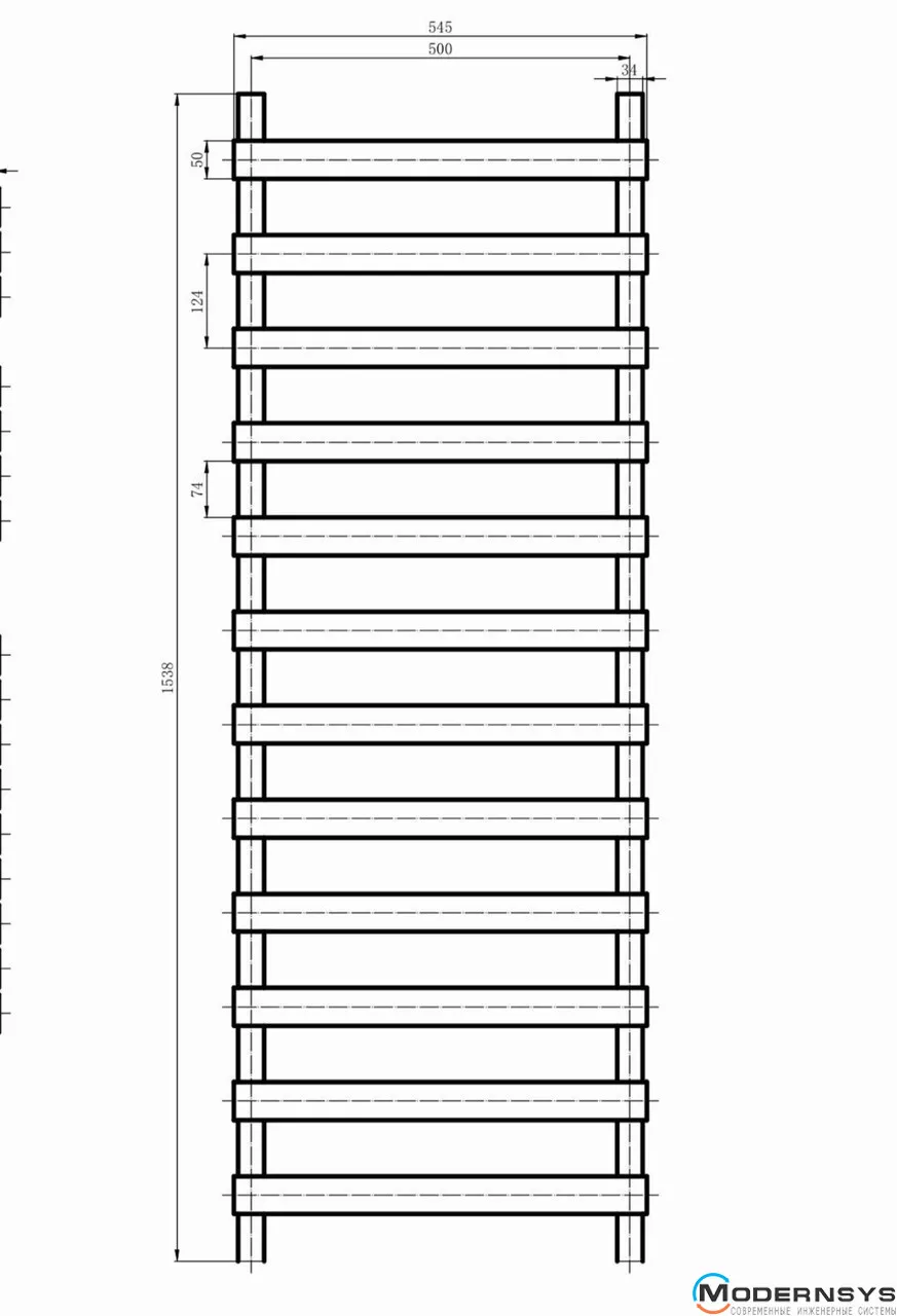 Технические характеристики: Дизайнерский полотенцесушитель ARTTIDESIGN (Арттидизайн) Menton 12/1500 черный матовый