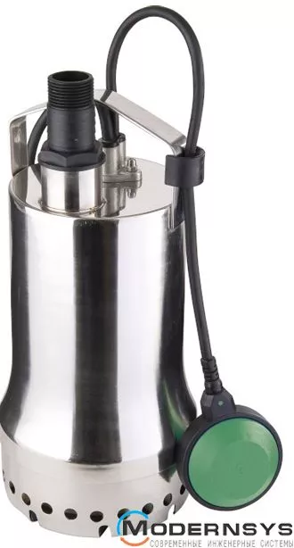 Ударостойкий прочный корпус изготовлен из нержавеющей стали. В насосе применен двигатель с «сухим» ротором и охлаждением от перекачиваемой среды, которая циркулирует между корпусом двигателя и насосом. Конденсатор помещен вовнутрь двигателя. В стандартный комплект поставки входят насос с поплавковым выключателем, обратным клапаном и патрубком для подсоединения шланга (R1,Ø 32 мм).