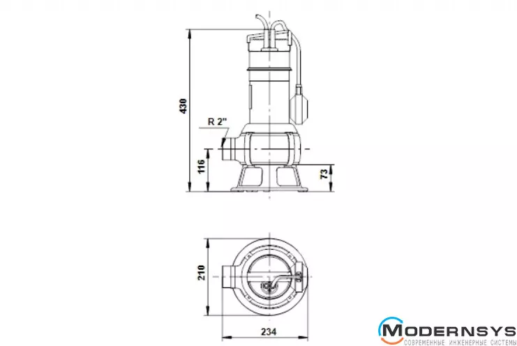 Насос имеет радиальный нагнетательный патрубок R 2" и готов к использованию как в переносном виде (установленный на опору), так и в стационарном виде (с автоматической системой муфт).