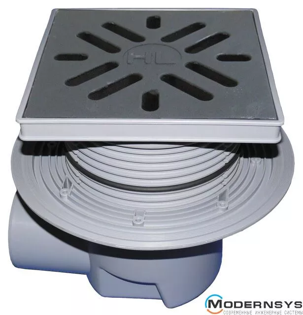 Дворовый трап серии HL Perfekt DN110 горизонтальный с обжимным фланцем 240х240мм (HL615)