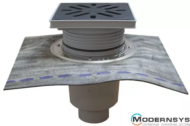 Дворовый трап серии HL Perfekt DN110 вертикальный с битумным полотном, 240х240мм (HL616HLW/1)