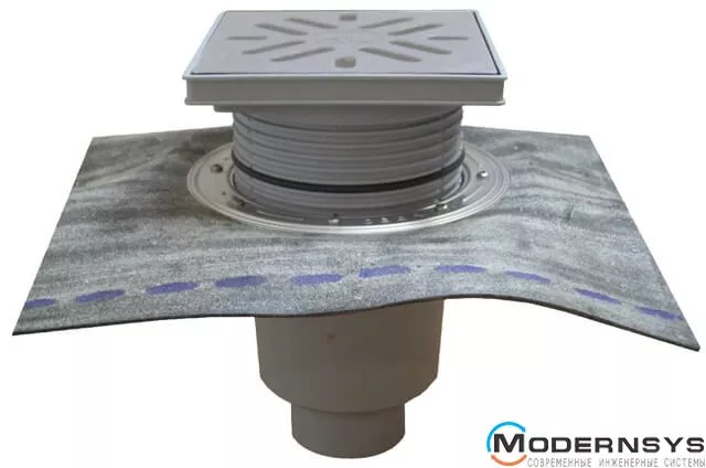 Дворовый трап серии HL Perfekt DN110 вертикальный с битумным полотном, 240х240мм (HL616HS/1)