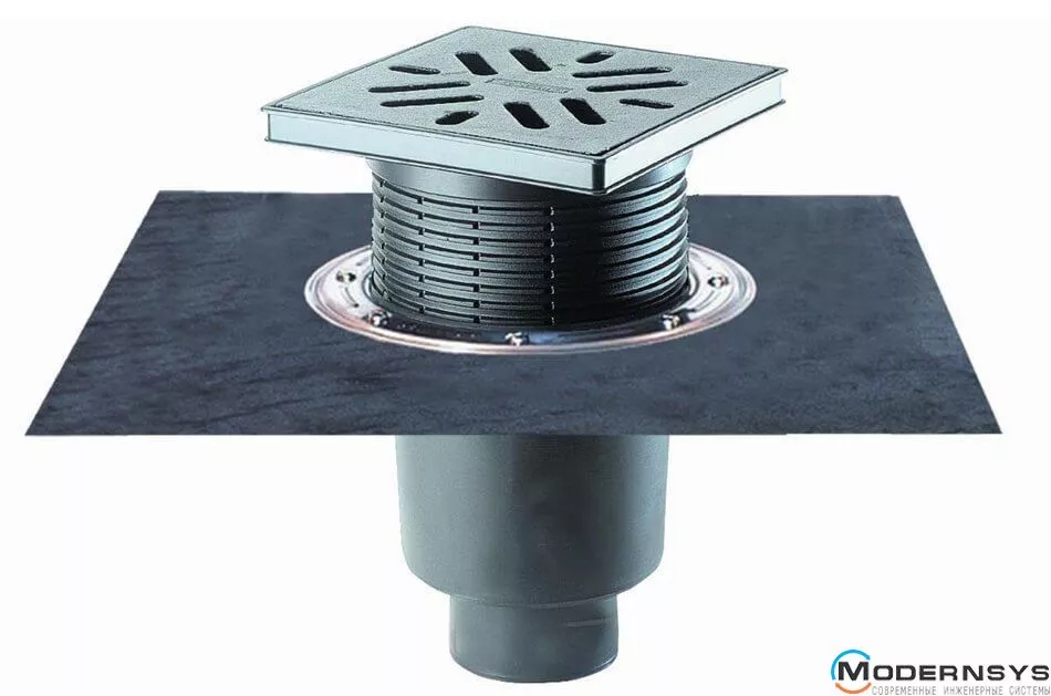 Дворовый трап серии HL Perfekt DN110 вертикальный с битумным полотном, 260х260мм (HL616.1H/1)