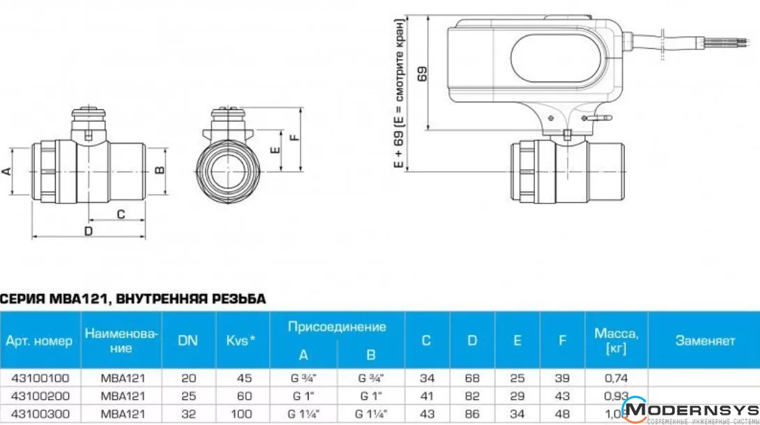 Описание: Двухходовой шаровой кран с приводом ESBE (Эсби) MBA121 ВВ 1¼" kvs 100