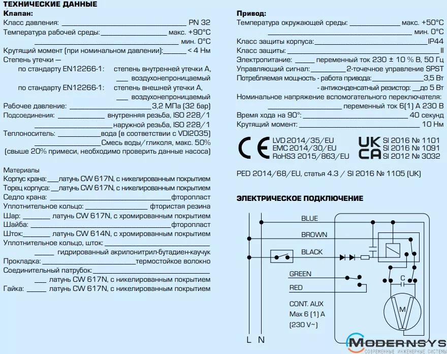 Технические характеристики: Двухходовой шаровой кран с приводом ESBE (Эсби) MBA121 ВВ 1¼" kvs 100