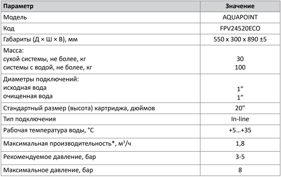 Технические характеристики для фильтра Ecosoft AquaPoint