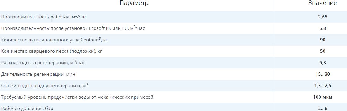 Технические характеристики фильтра для удаления сероводорода Ecosoft