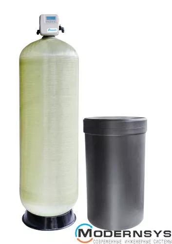 Установка снабжена корпусом из прочного композитного материла в который помещен фильтрующий материал (объем катионита зависит от исполнения – от 150 до 1100 литров). На нем установлен управляющий клапан, обеспечивающий автономную автоматическую работу (очистку воды и регенерацию). Таблетированный компонент для регенерации храниться в отдельном солевом баке. Для подсоединения системы к трубопроводам используется резьбовое соединение 1,25’’, 1,5’’, 2’’. Дополнительно система может комплектоваться клапаном для перекрытия байпаса на время выполнения регенерации, трехходовым альтернатором, выполняющим переключение потоков, а также системным контроллером или платой расширения, которые обеспечивают совместную работу до 4 установок.