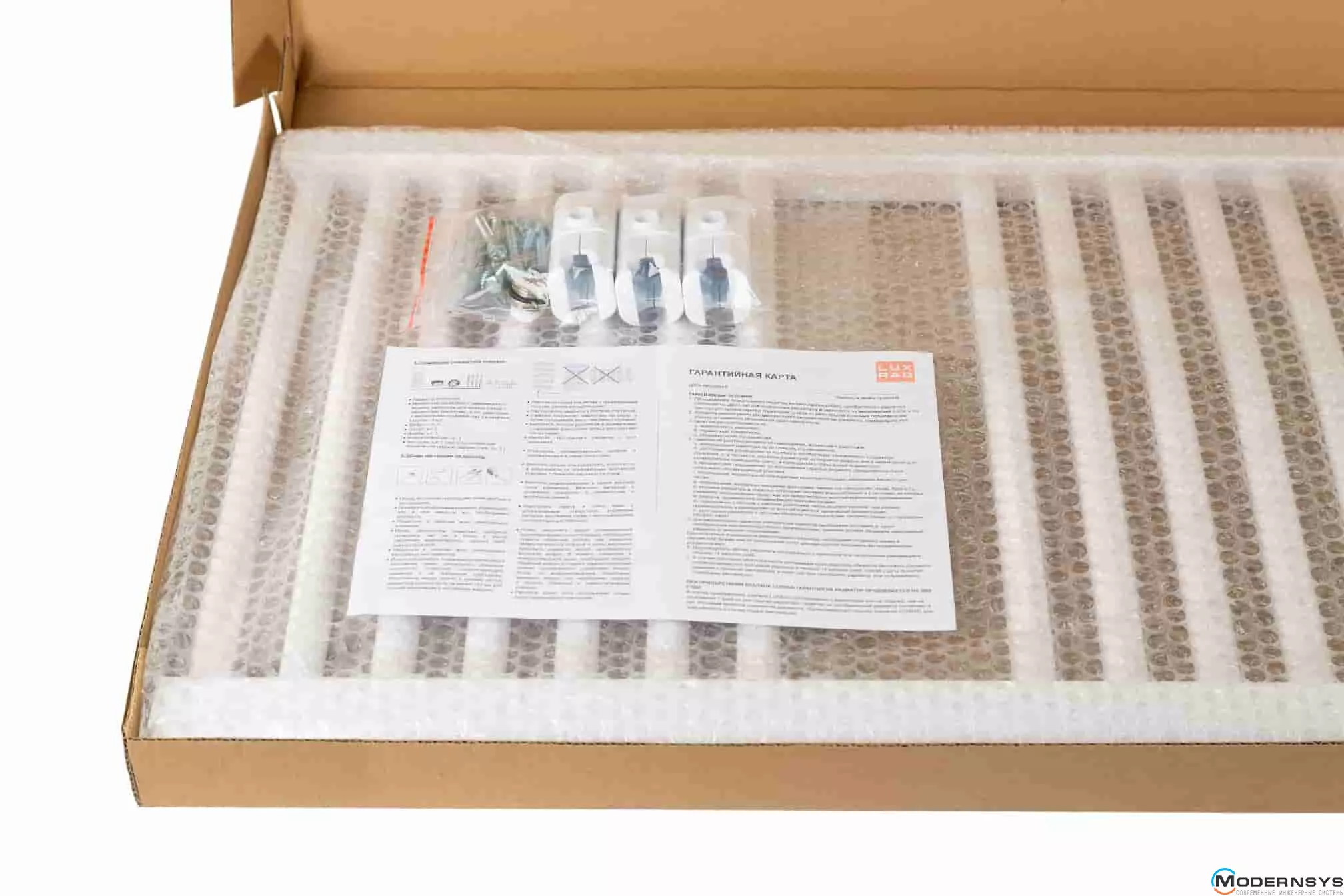 В комплект с полотенцесушителем входит набор креплений, дюбели и гарантийный талон.