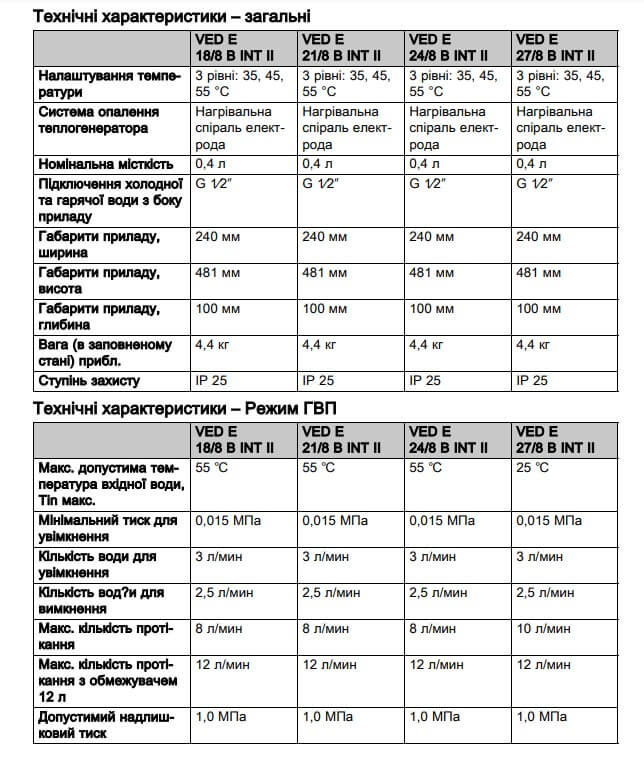 - Максимальная температура воды на входе до 55 С (кроме водонагривчив 27 кВт)