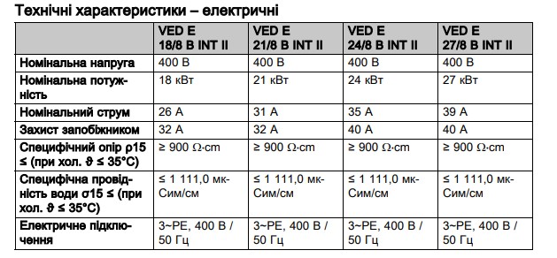 Название товара КОД Тепловая мощность (кВт) Цена Электрический проточный водонагреватель Vaillant VED E 18/8 B 00006276116 819 грн Электрический проточный водонагреватель Vaillant VED E 21/8 B 00006276017 009 грн Электрический проточный водонагреватель Vaillant VED E 24/8 B 00006275917 294 грн