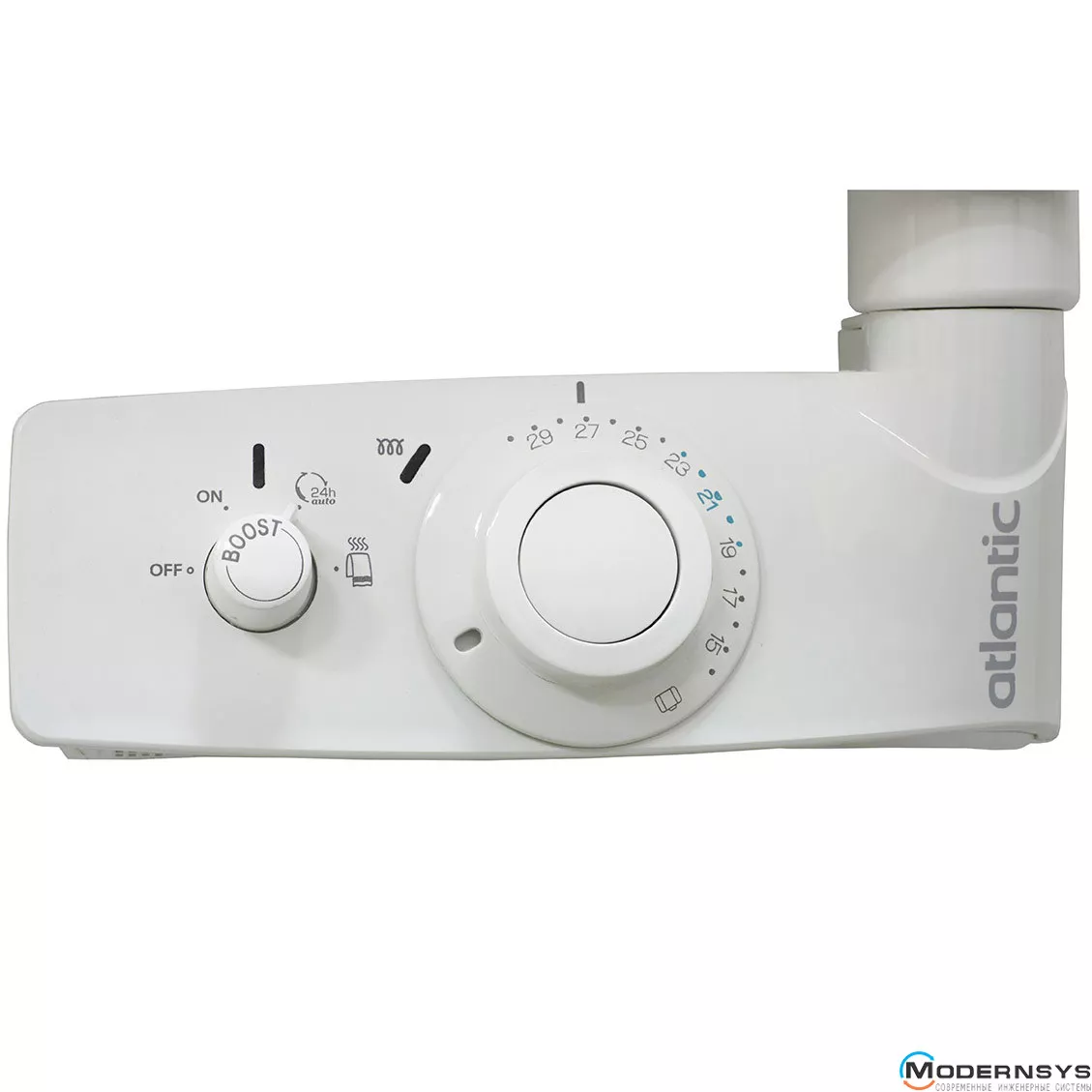 - «Boost» – предназначен для интенсивного прогрева помещения. С момента активации Atlantic Adelis 500 Вт работает на максимальной мощности в течение 2 часов, вне зависимости от установленной температуры на панели управления. Активируется режим нажатием ручки Boost на 1 секунду. Режим может быть отключен повторным нажатием ручки на 1 сек. При более длительном нажатии ручки включается функция «Защита от детей».