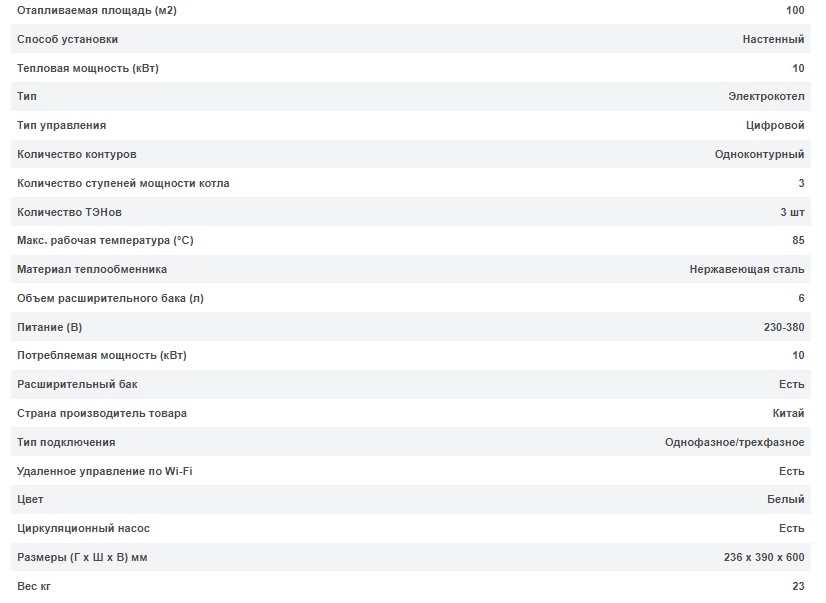 Технические характеристики: Электрокотел Midea (Мидея) 10KW