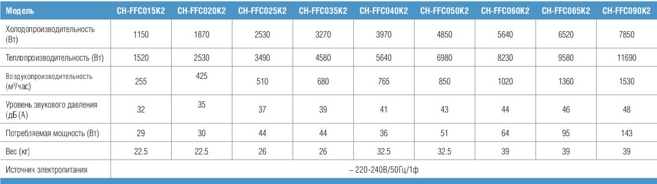 Технические характеристики для серии напольно-потолочных фанкойлов Cooper&Hunter
