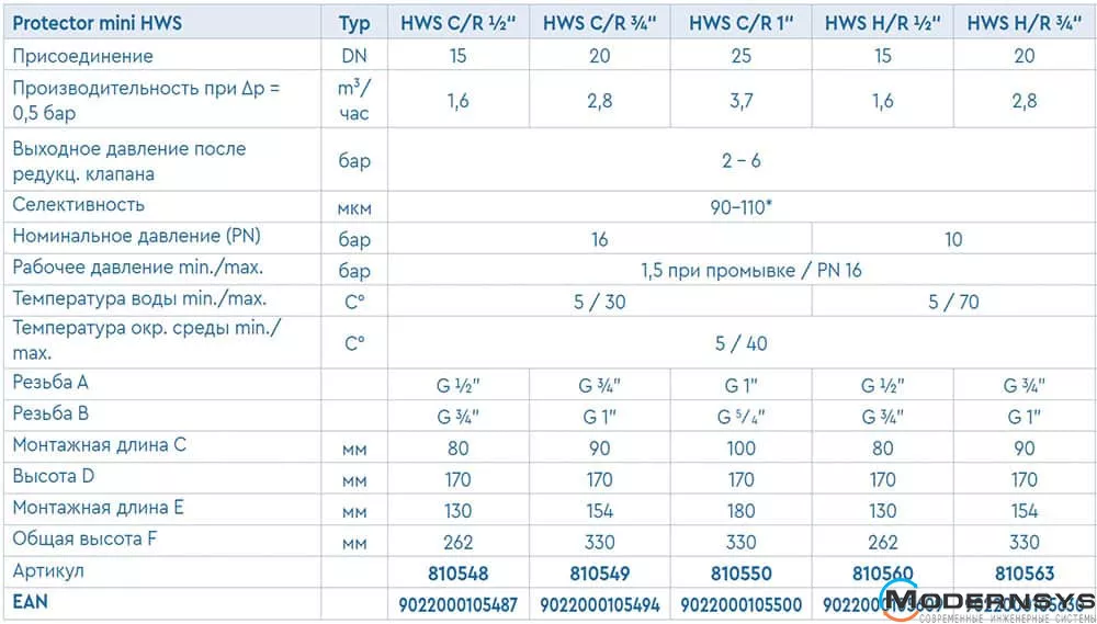 Название товара КОД Диаметр резьбы Макс. Температура (град.) Цена Фильтр для холодной воды с регулятором давления BWT PROTECTOR MINI HWS CR ½" 0000715393 779 грн Фильтр для горячей воды с регулятором давления BWT PROTECTOR MINI HWS HR ½" 0000715454 913 грн Фильтр для горячей воды с регулятором давления BWT PROTECTOR MINI HWS HR ¾" 0000715465 459 грн