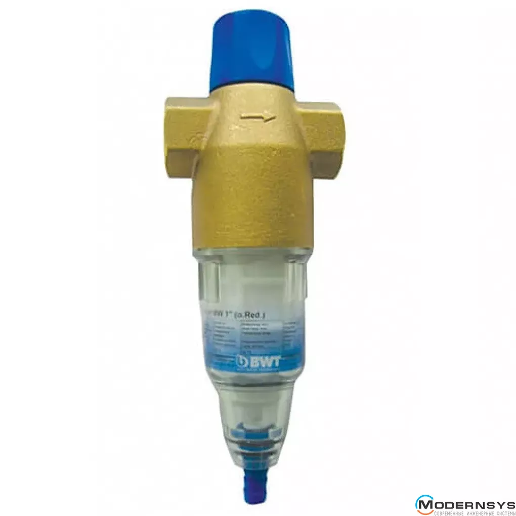 Фильтр механический с обратной промывкой BWT PROTECTOR BW — компактный механический фильтр с ручной обратной промывкой для холодной воды с диаметром подключения 1 дюйм.