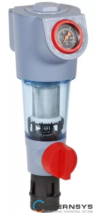 Фильтры снабжены запатентованной компанией системой обратной промывки, которая обеспечивает полную быструю очистку фильтрующей сетки небольшим количеством воды. Чаша фильтрующего элемента выполнена из прочного прозрачного синтетического материала, что позволяет визуально оценивать степень загрязнения. Все уплотнения выполнены из NBR. Для контроля давления на корпусе расположен манометр. Фильтры Honewell (Resideo Braukmann) устанавливаются в системы с установленным клапаном понижения давления или его установка не требуется.