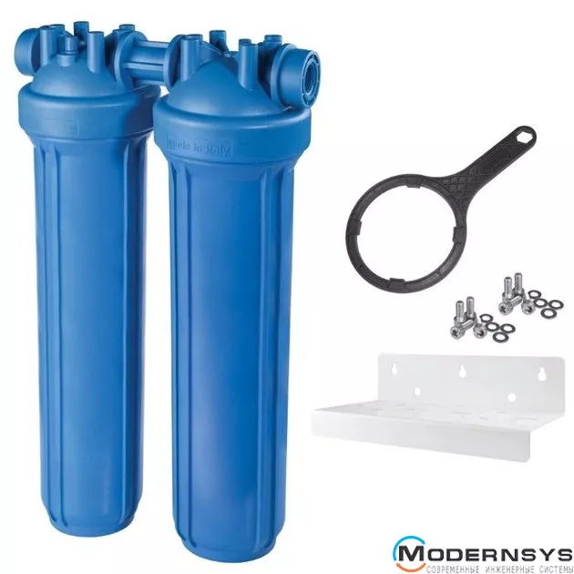 Описание: Фильтр-колба Atlas Filtri (Атлас Фильтры) DP BIG DUO AB (голубая) Ø1 1/2" IN (пластик) 20" 45°C 8,3 bar