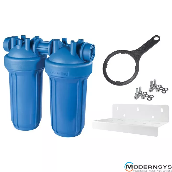 Описание: Фильтр-колба Atlas Filtri (Атлас Фильтры) DP BIG DUO AB (голубая) Ø1" IN (пластик) 10" 45°C 8,3 bar