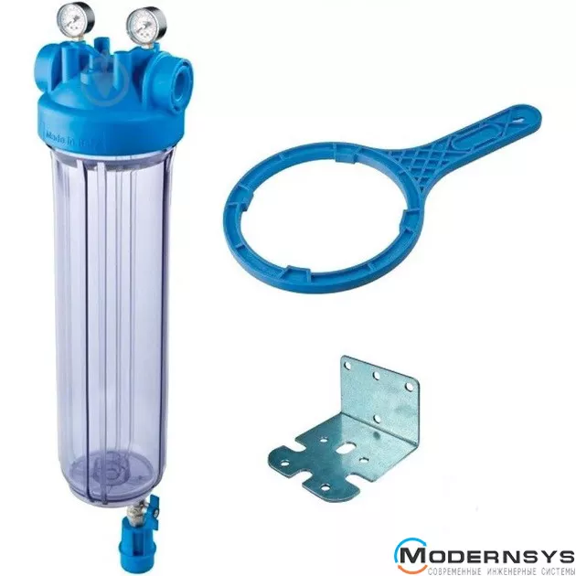 Описание: Фильтр-колба Atlas Filtri (Атлас Фильтры) DP BIG SM TS (прозрачный) Ø1" IN (пластик) 20" 45°C 8,3 bar +2 манометра K