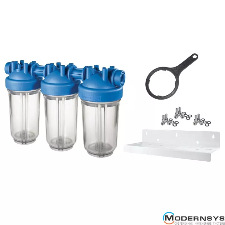 Водяные фильтры DP BIG TRIO производства Atlas Filtri - это корпусы, специально разработанные для картриджей SX внешним диаметром 4.5". Благодаря вх/вых патрубкам 1" и 1 1/2" с пластмассовой резьбой цилиндрического (BSP) или конического типа (NPT), DP BIG адаптируются к необходимости любой большой пропускной способности фильтрации для бытовых и промышленных целей. Водяные фильтры DP BIG оснащены матовым или прозрачным стаканом высотой 10" и 20" и доступны в версиях MONO, DUO и TRIO для серийной фильтрации, а также оснащены моноблочным коллектором без риска потери воды.