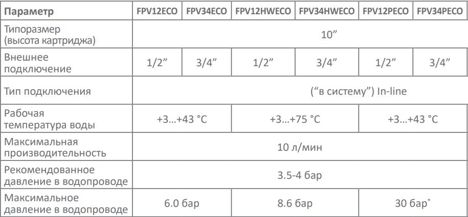 Технические характеристики для серии фильтров механической очистки Ecosoft