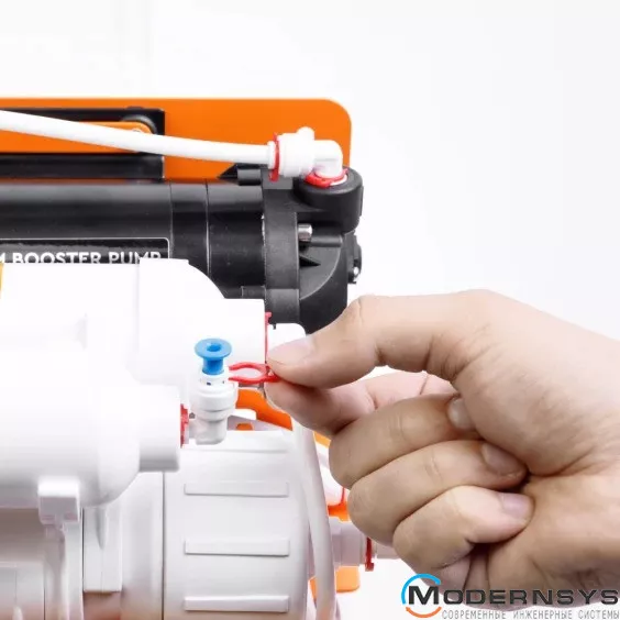 Поскольку мембрана имеет микропористую структуру, необходимо обеспечить определенное давление для эффективного прохождения воды через ее поверхность. Если напор в трубопроводе холодной воды ниже заданного значения, давление повышают путем установки насоса.