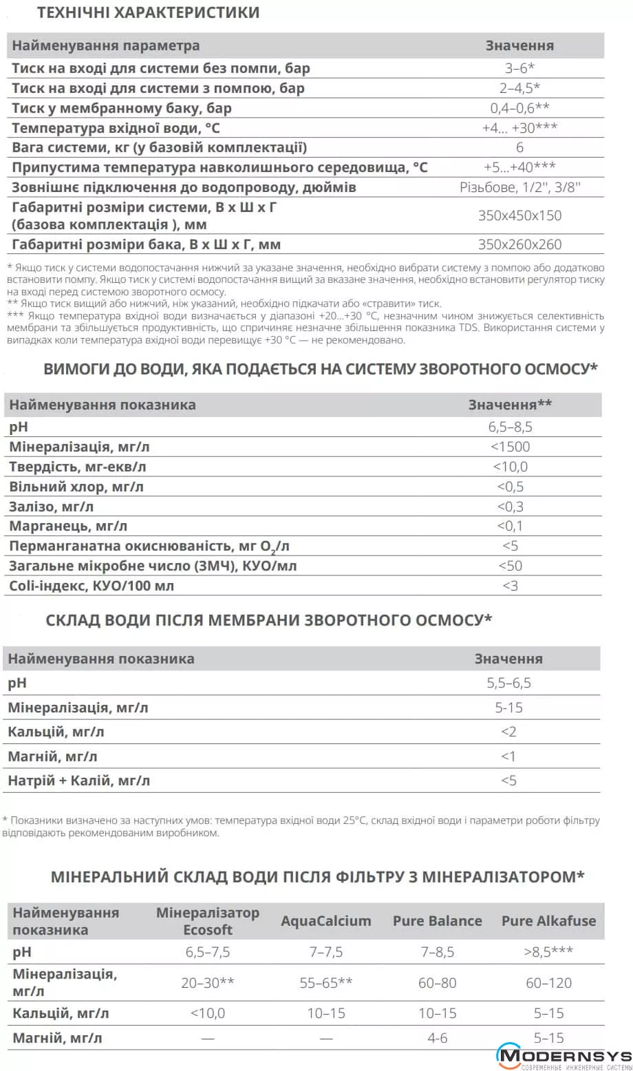 Технические характеристики: Фильтр обратного осмоса Ecosoft (Экософт) Absolute 6-75MPS с минерализатором и насосом на станине