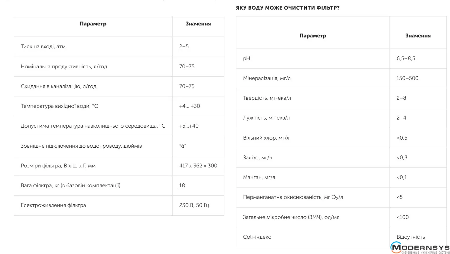 Технические характеристики: Фильтр обратного осмоса Ecosoft (Экософт) Robust COFFEE