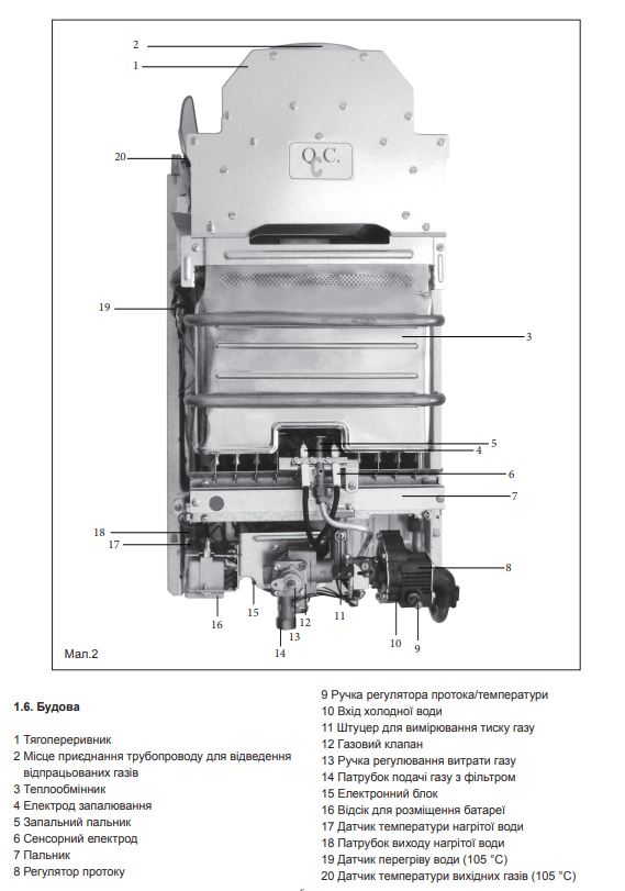 Строение газовой колонки Atlantic by innovita Trento lono Select 11 iD