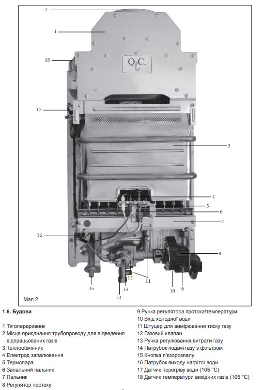 Строение газовой колонки Atlantic by innovita Trento Pilot MAX 11