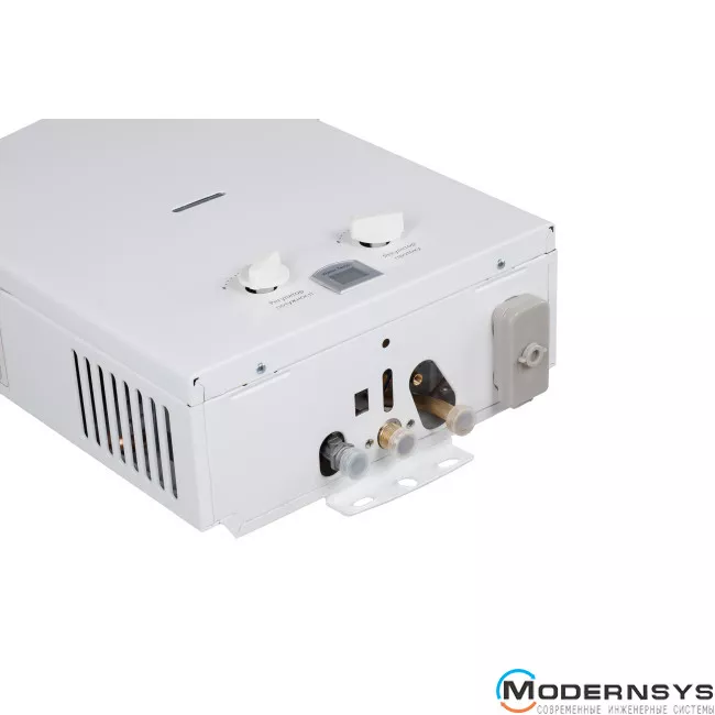 Проточная система предназначена для работы с давлением газа в диапазоне от 0,3 до 6 бар. Газоводяной блок колонки неприхотлив к качеству топлива и работает на природном газе (метане).