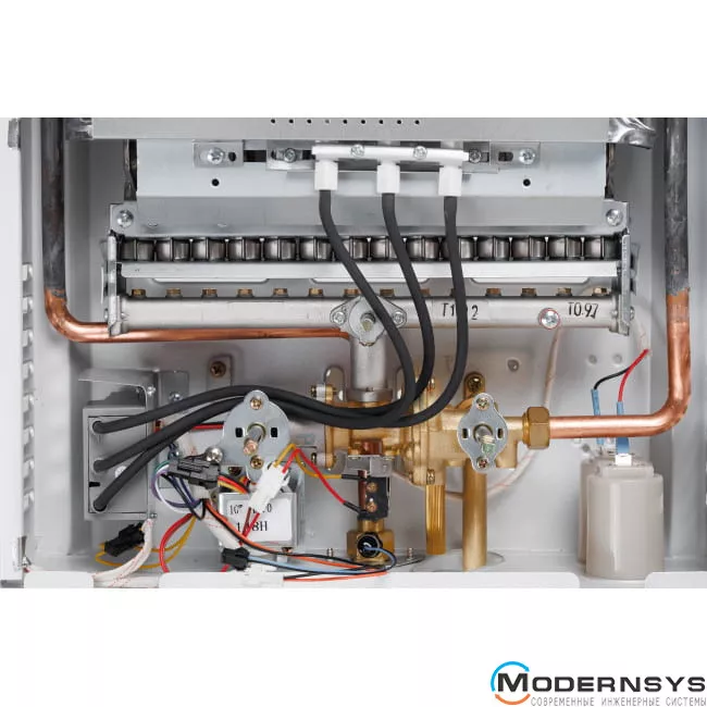 Проточная система предназначена для работы с давлением газа в диапазоне от 0,3 до 6 бар. Газоводяной блок колонки неприхотлив к качеству топлива и работает на природном газе (метане).