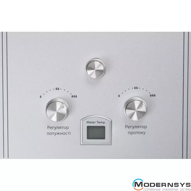 В то же время она имеет электронный розжиг с регулировкой пламени, автоматически срабатывающий при открывании крана горячего водоснабжения, а также LED дисплей для отображения и контроля температуры воды, максимальный показатель которой составляет 65 °C.