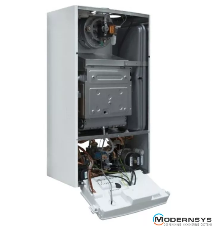 - Жидкокристаллический дисплей для отображения температуры в контуре отопления и ГВС, кодов блокировок, Установок температуры отопления, горячей воды и режима работы котла;