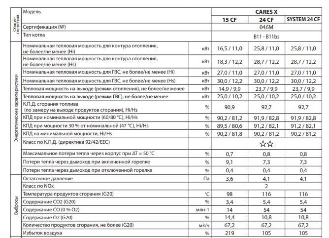 Технические характеристики: Газовый котел Ariston (Аристон) CARES X 24 CF EU