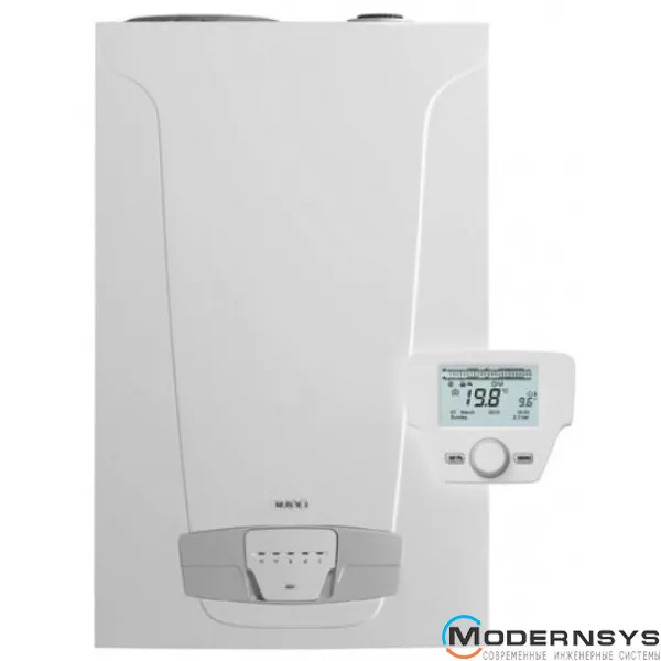 Конденсационный котел премиум класса BAXI LUNA PLATINUM, настенный, двухконтурный, встроенный бойлер из нержавеющей стали объемом 40 литров. Прогрессивный модуляционный циркуляционный насос, съемная панель управления с широким дисплеем и встроенным датчиком температуры, встроенный расширительный бак ГВС. Коэффициент модуляции мощности 1:10 позволяет отапливать помещения площадью от 30 до 250 м², оборудованные закрытой системой (макс. рабочее давление 3 бара). Контур ГВС из нержавеющей стали вырабатывает до 18.9 л/мин санитарной воды при ΔT 25°C, до 500 литров бытовой горячей воды за 30 минут (ΔT = 30 °C). Принудительная система дымоудаления (турбо).