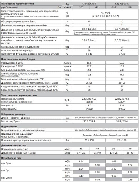 Технические характеристики: Газовый котел Italtherm (Италтерм) CITY TOP 25 K конденсационный