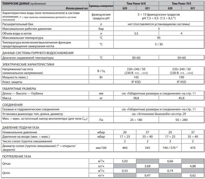 Технические характеристики: Газовый котел Italtherm (Италтерм) TIME POWER 50 K конденсационный