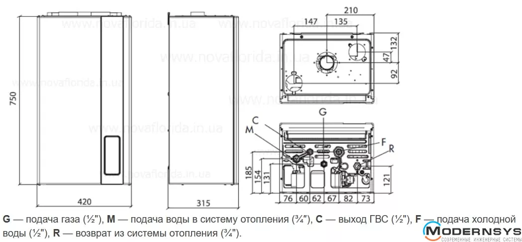 Технические характеристики: Газовый котел (турбо) 2-контурный (2 теплообменника) NOVA FLORIDA (Нова Флорида) COBU32CA32 ORION CTFS 32