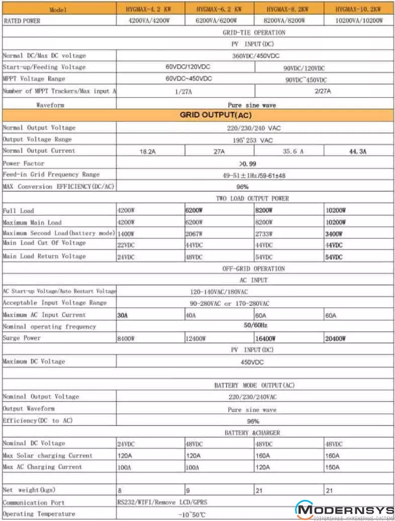 Технические характеристики: Гибридный солнечный инвертор LogicPower (Лоджик Повер) (ИБП) LPW-HYGMAX-4200VA (4200Вт) 24V 120A MPPT 90-450V ON-OFF GRID