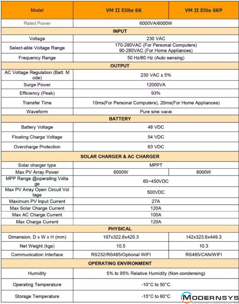 Технические характеристики: Гибридный солнечный инвертор LogicPower (Лоджик Повер) (ИБП) LPW-VM II Elite 6000VA (6000Вт) 48V 120A MPPT 60-450V ON-OFF GRID