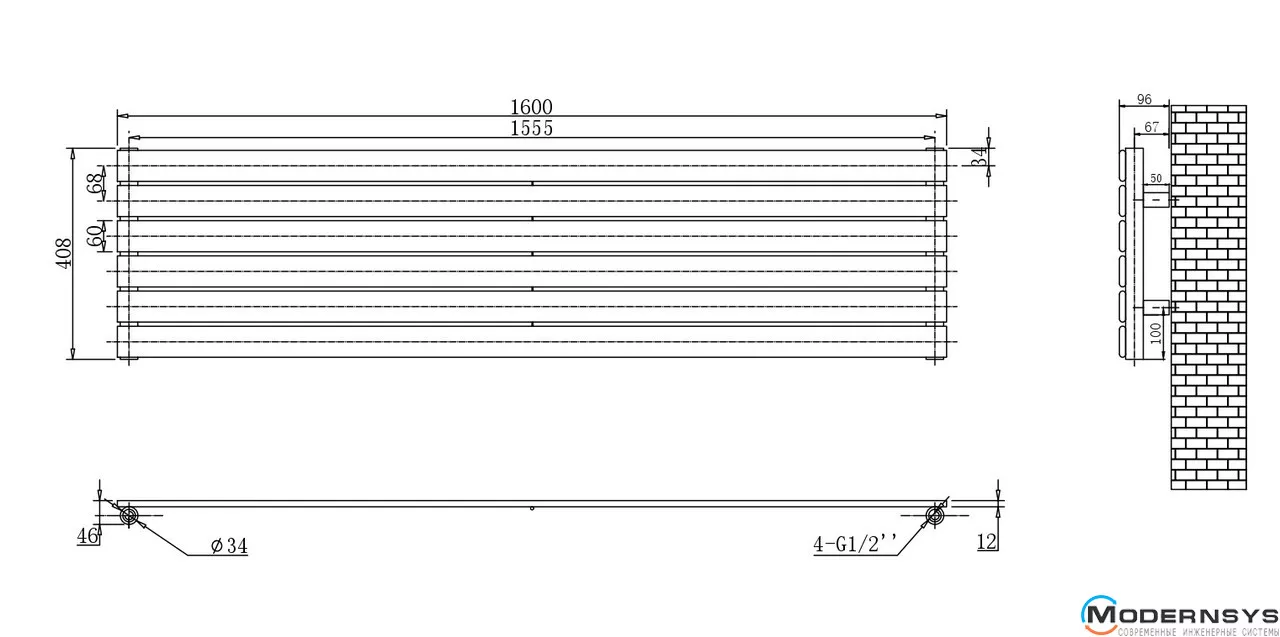 Технические характеристики: Горизонтальный дизайн радиатор ARTTIDESIGN (Арттидизайн) Livorno G 6/408/1600 белый матовый