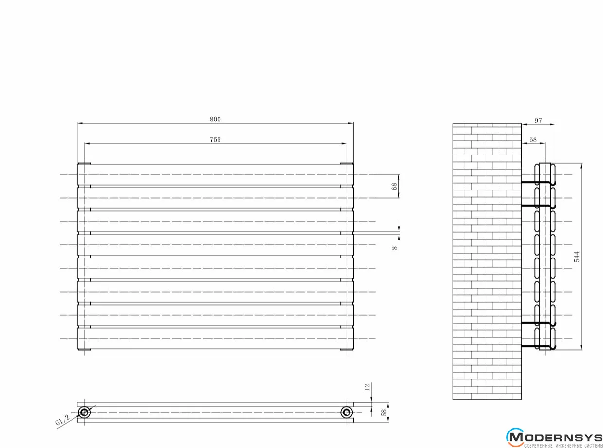 Технические характеристики: Горизонтальный дизайн радиатор ARTTIDESIGN (Арттидизайн) Livorno II G 8/544/800 серый матовый