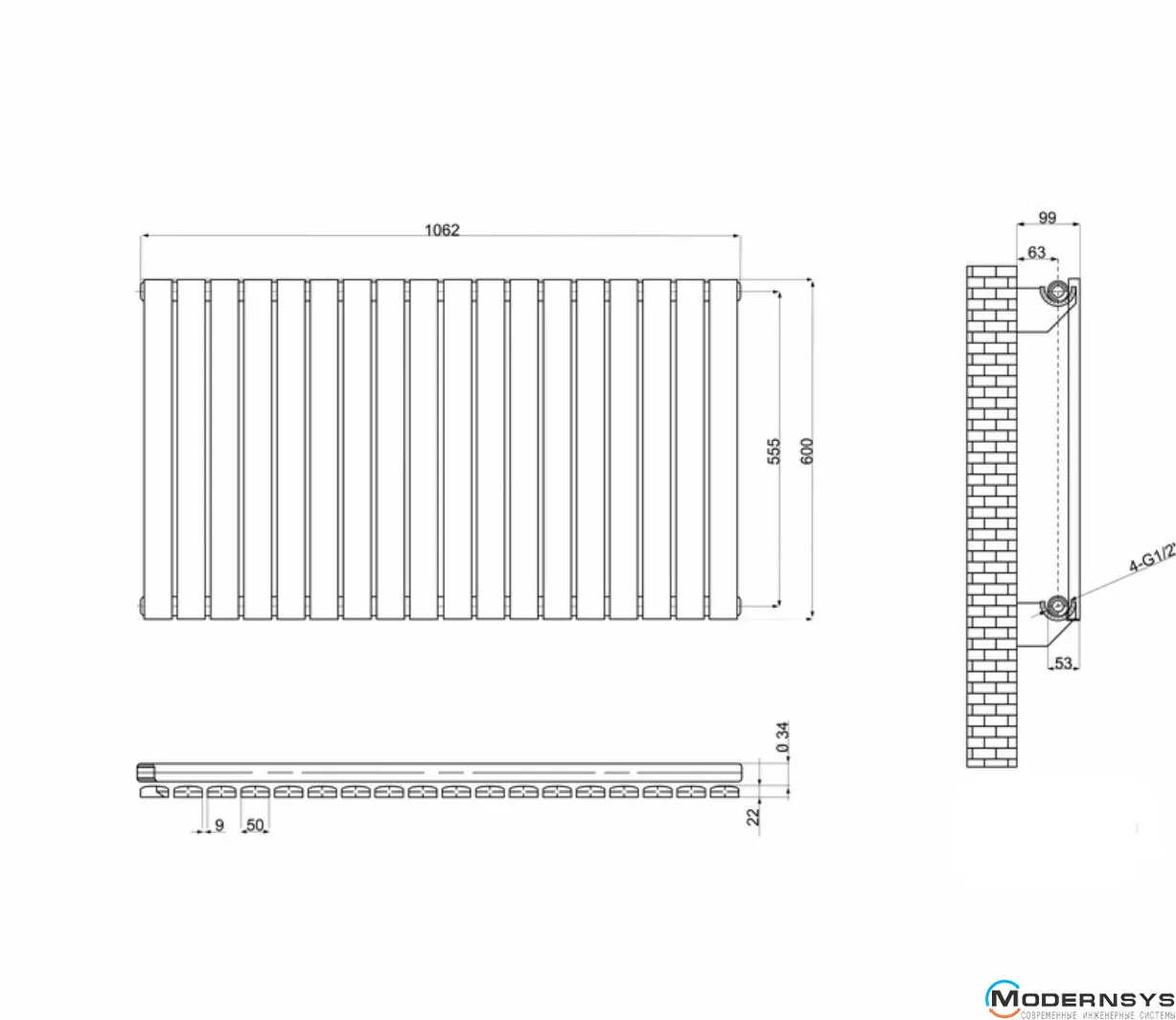 Технические характеристики: Горизонтальный дизайн радиатор ARTTIDESIGN (Арттидизайн) Terni G 18/600/1062 белый матовый