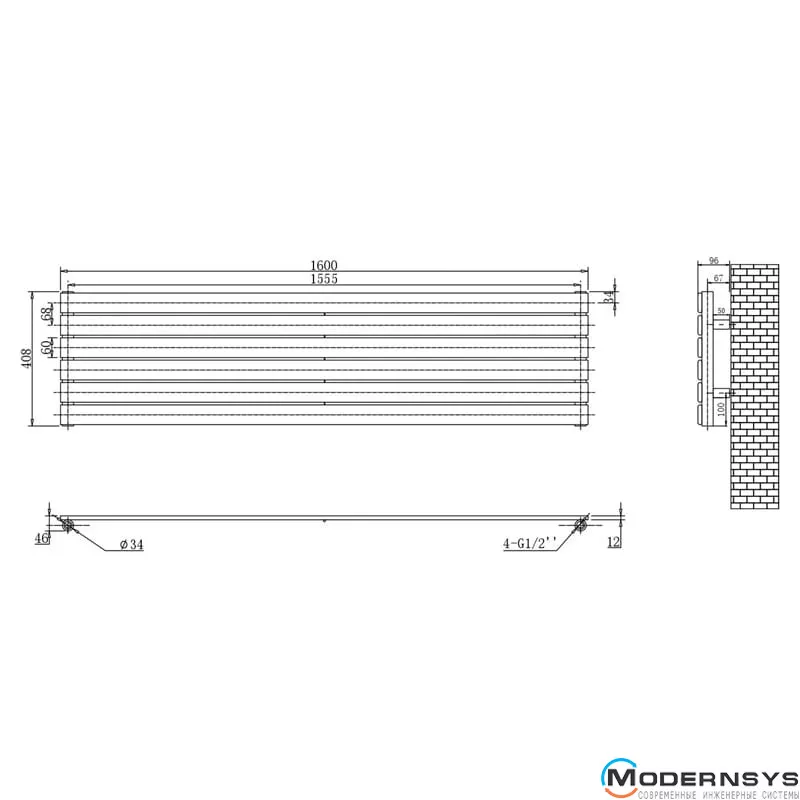 Технические характеристики: Горизонтальный дизайнерский радиатор отопления ARTTIDESIGN (Арттидизайн) Livorno G 6/408/1600 черный матовый