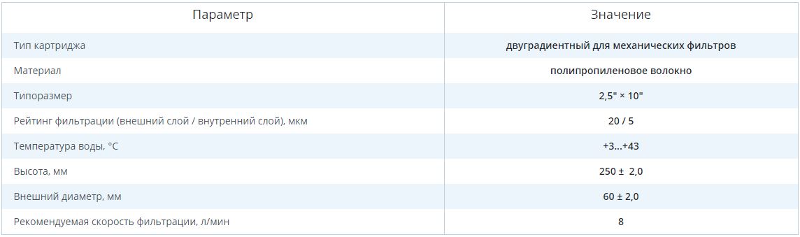 Технические характеристики: Градиентный картридж из вспененного полипропилена Ecosoft (Экософт) 2,5"x10" (CPV2510205ECO)