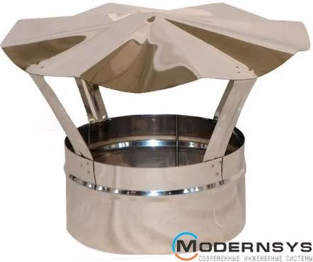 Для защиты внутренних поверхностей нержавеющих дымоходов от атмосферной влаги, на верхнюю часть трубы устанавливается специальный грибок. Изготавливается грибок для дымохода из жароустойчивой нержавеющей стали толщиной 0,6, 0,8 или 1,0 мм. Благодаря системе соединений «труба в трубу» и малому весу нержавеющего грибка, монтаж не вызывает трудностей. Грибок для дымохода из нержавеющей стали имеет привлекательный внешний дизайн, не препятствует движению дымовых газов и выдерживает температуру до 600 °C. Устанавливается чаще всего на голые дымоходы.