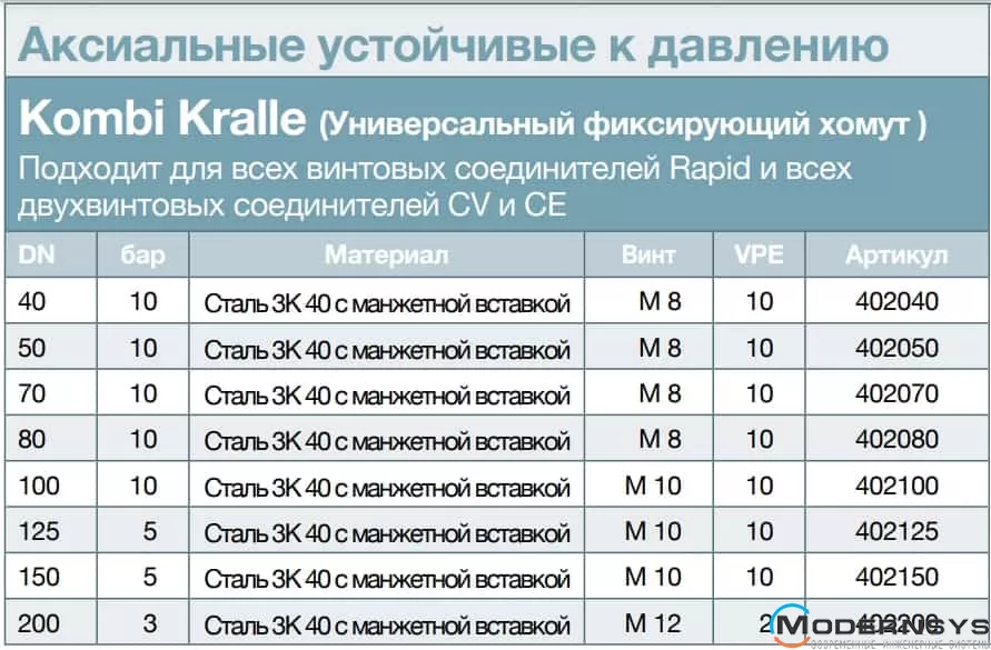 Технические характеристики: Хомут фиксирующий универсальный Kombi Kralle DN150мм RSP (РСП) 402150