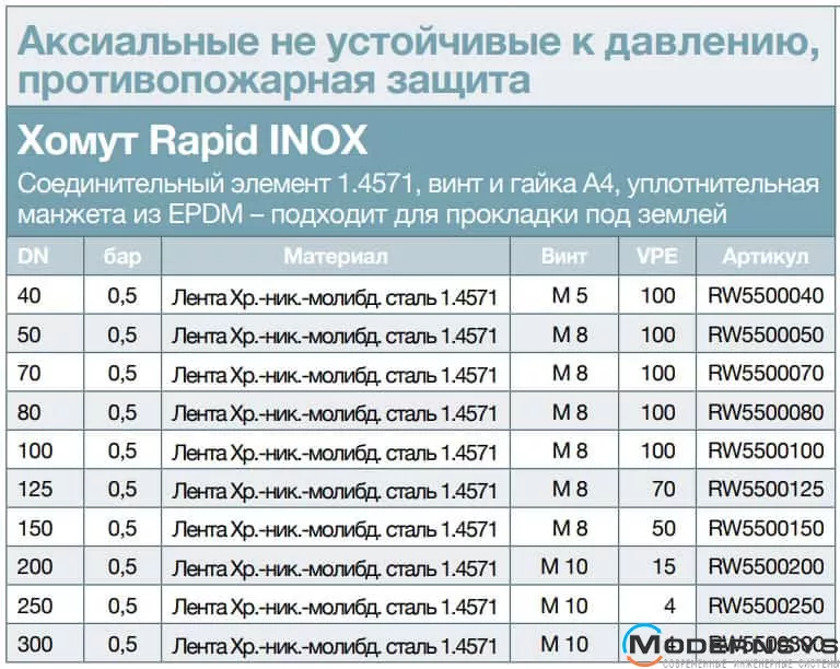 Благодаря своим превосходным эксплуатационным показателям и отличному качеству хомут Rapid-Inox является одним из самых востребованный соединителей.